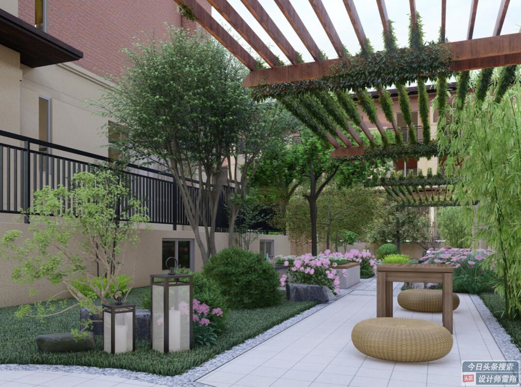 一、项目概况(背景):本庭院设计方案位于四川省成都市,设计制图使用SU、Lumion、PS等软件。庭院去掉建筑后面积约在130㎡左右,业主四口之家,家里有两位老人以及业主夫妇,业主要求庭院简单素雅,因为平时工作很忙,所以基本上都是两位老人在家,希望可以给老人规划出一块菜地的区域,留给老人打发时间,最后业主选择了新中式风格庭院景观设计。