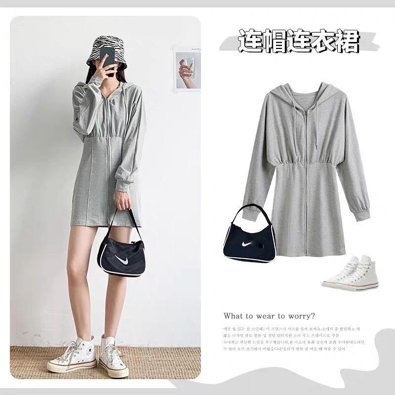 活力又简约的连帽连衣裙当然是元气女人们的必备款式了,这一条连衣裙是纯灰色的,看起来很素,但是却蕴含着满满的心机。连帽的设计能够加强活力感,同时还加入了抽绳的元素,可以自行调节,非常的方便。