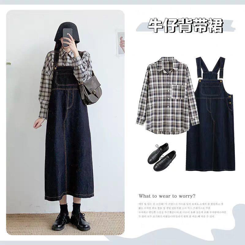 想要搭配出文艺风的小姐姐们,可以选择一件格子的衬衫作为内搭,配上一条牛仔的背心裙。再搭配一双百搭的黑色小皮鞋,这样的造型文艺又时尚。这样的穿搭很减龄,并且能够展示出你青春的一面。