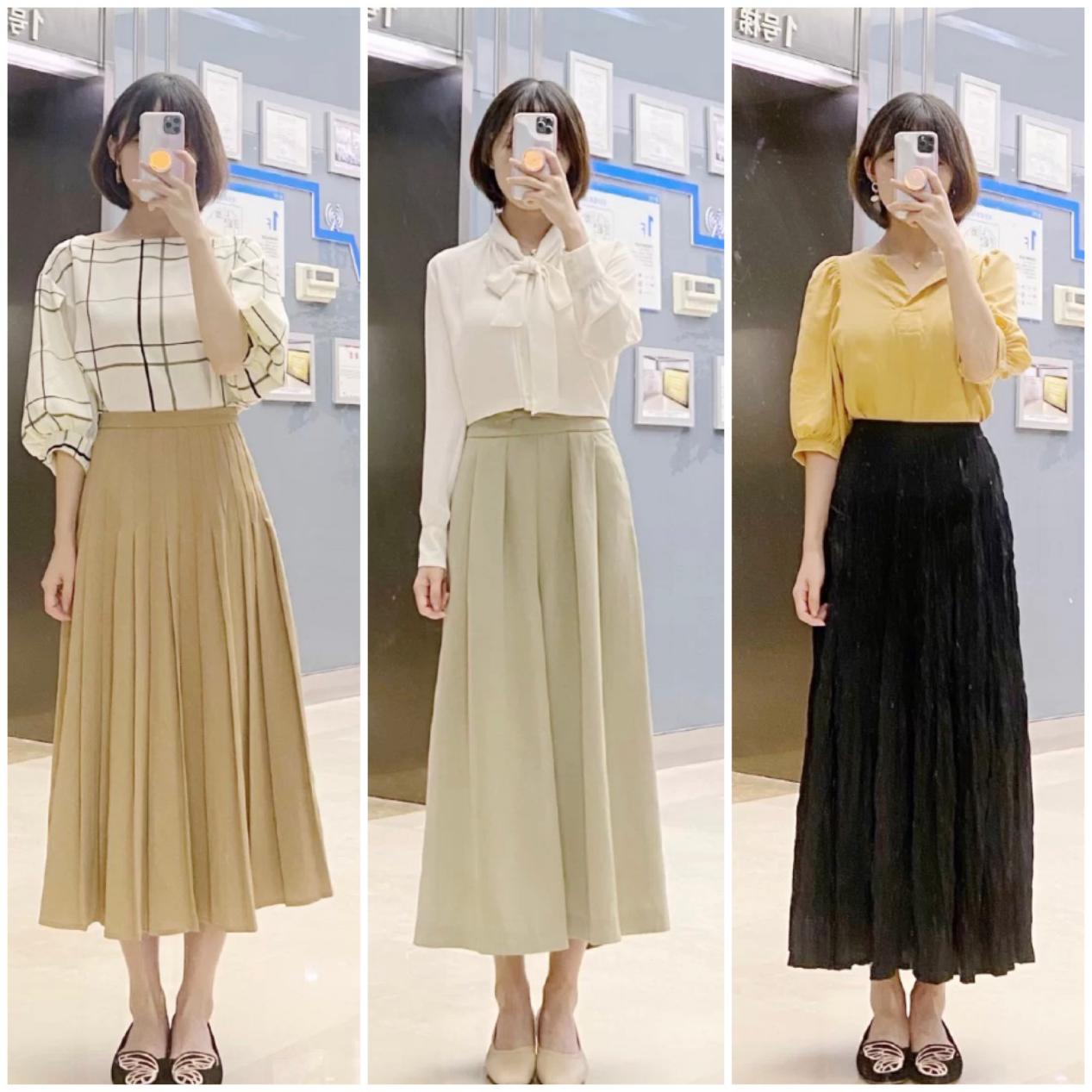 长裙可以说是职场风格穿搭中比较常用到的装备,长裙的最大好处就是可以使得女孩子看起来更加优雅。格子衬衫搭配米色长裙,将会使得优雅的一面变得更加强烈。而选择白色雪纺衬衫搭配淡绿色长裙,则会更加体现出女性的气质。当然也可以选择米黄色衬衫搭配黑色裙子,这样的搭配也是非常不错的选择。